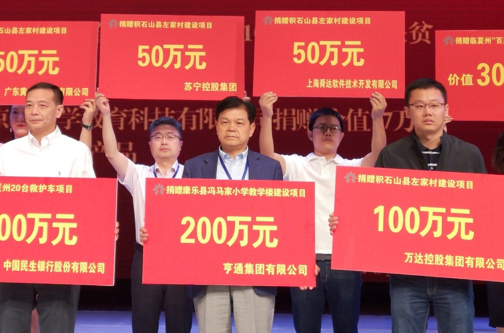 中国光彩会常务理事、亨通集团董事局主席崔根良应邀出席“中国光彩事业临夏行”系列活动并代表亨通捐款,资助临夏康乐县冯马家小学教学楼建设项目。该项目将为冯马家小学新建一座610平方米教学楼,解决冯马家村及周边村130名学生就近入学问题。