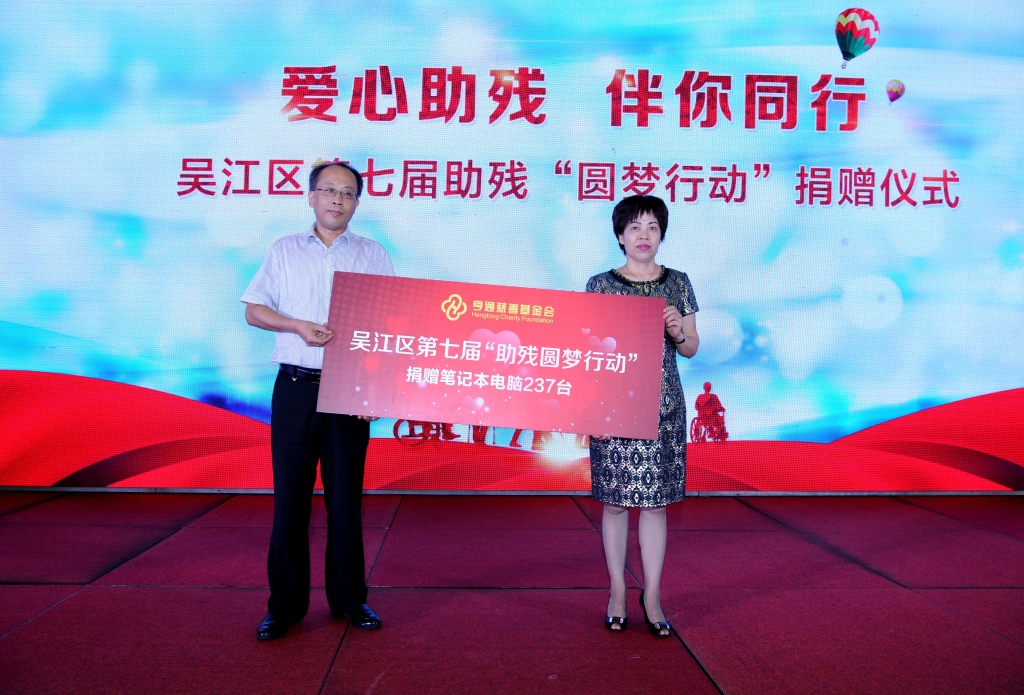 9月29日上午,在亨通慈善基金会和吴江区残联共同举办的吴江区第七届“助残圆梦行动”捐赠仪式上,亨通向吴江全区237户困难残疾人家庭孩子捐赠笔记本电脑,为他们追求梦想插上了飞翔的翅膀。