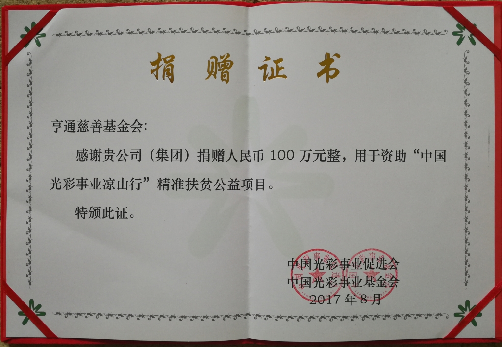 亨通慈善基金会向凉山行项目捐款100万元