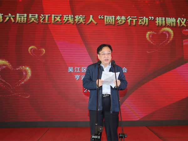吴江区委副书记、区长沈国芳,苏州市残联理事长蔡建军,亨通慈善基金会理事长钱丽英及吴江相关部门领导出席捐赠仪式。