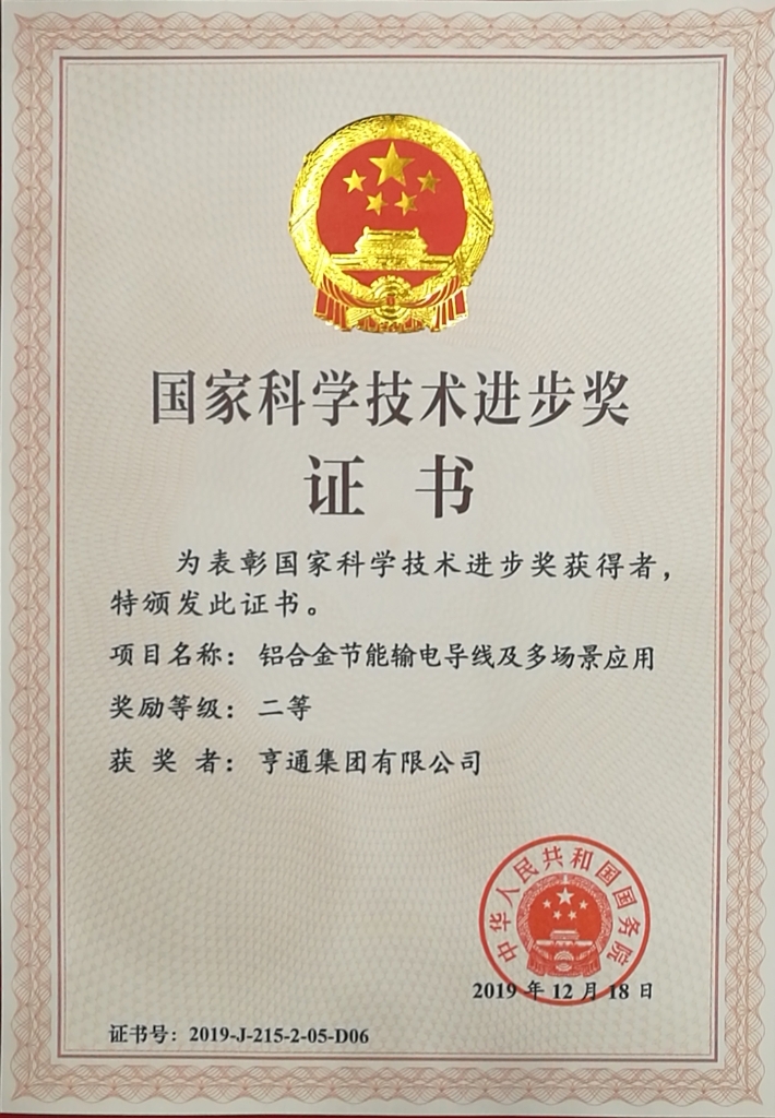 中共中央、国务院1月10日上午在北京隆重举行国家科学技术奖励大会。习近平、李克强、王沪宁、韩正等党和国家领导人出席大会并为获奖代表颁奖。亨通集团参与的“铝合金节能输电导线及多场景应用”项目荣获2019年度国家科技进步二等奖。