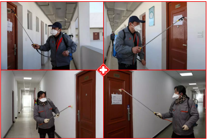 在各大园区、生产区、办公区定期喷洒杀毒消毒药水,给员工创造绿色安全得健康工作环境。