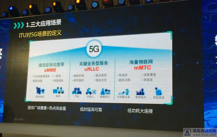 当前,业界公认5G网络将表现为三大应用场景:增强型移动宽带(eMMB)、关键业务型服务(uRLLC)和海量机器类通信(mMTC)。